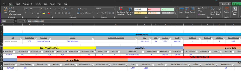 数据磁带包括有关要购买、再融资、翻新、 或待建。最重要的数据是地址、房产特征、购买价格和日期、修复成本、市场价值、租赁日期、租赁金额、税收、保险和管理成本。
